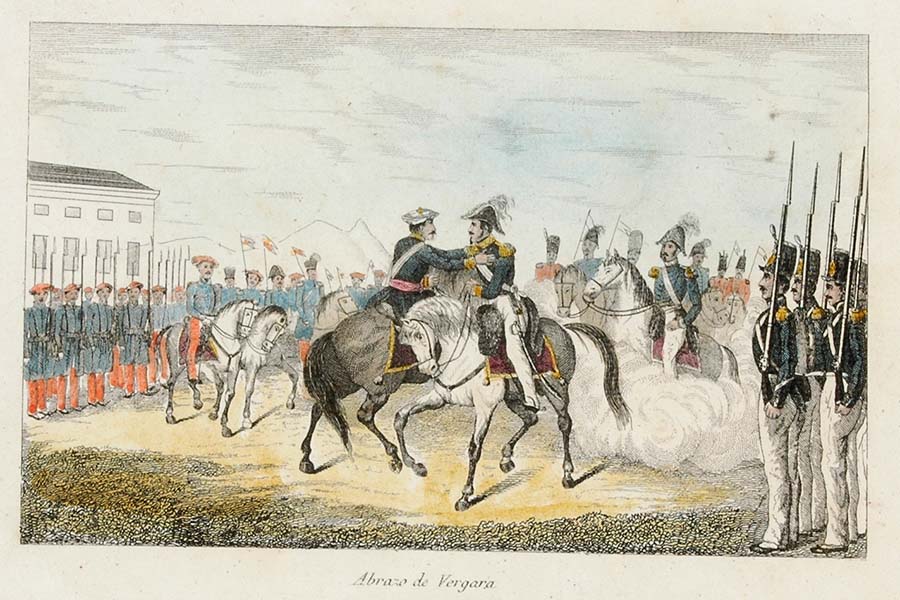 Obra de referencia: Abrazo de Bergara. Grabado, 1845. (P-002632)